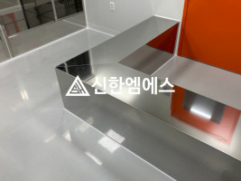오픈형 선반을 벽공간에 맞춰 짜맞춰 시공했습니다. 상부를 동일한 재질인 스텐으로 천장까지 마감하여 먼지가 내려 앉지 않도록 하였습니다. 초기 시공비용은 높아지지만 유지관리가 매우 편리합니다.